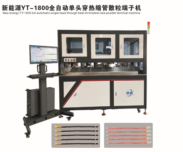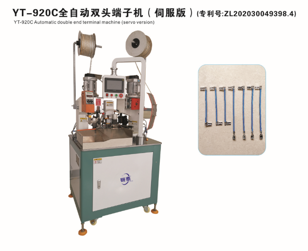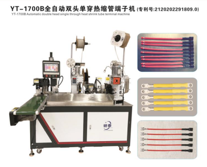 全自動雙頭穿護套端子機、全自動雙頭穿熱縮管端子機、全自動銅帶壓接端子機、全自動雙頭端子機、全自動排線端子機、全自動沾錫打端機、全自動打端插殼機、新能源全自動雙頭穿熱縮管散粒端子機、新能源全自動雙壓單穿激光打號碼管端子機、新能源大平方穿號碼管端子機。